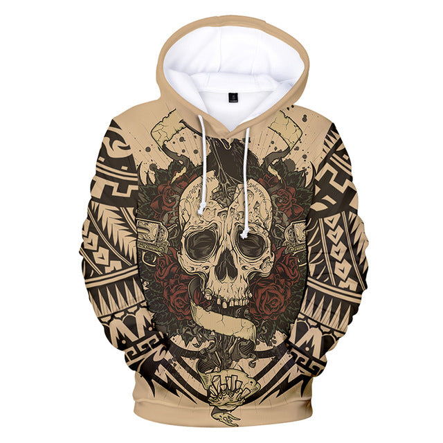 3d Hoodies Pullover Tattoo Skull Rose Print Fashion Men Women